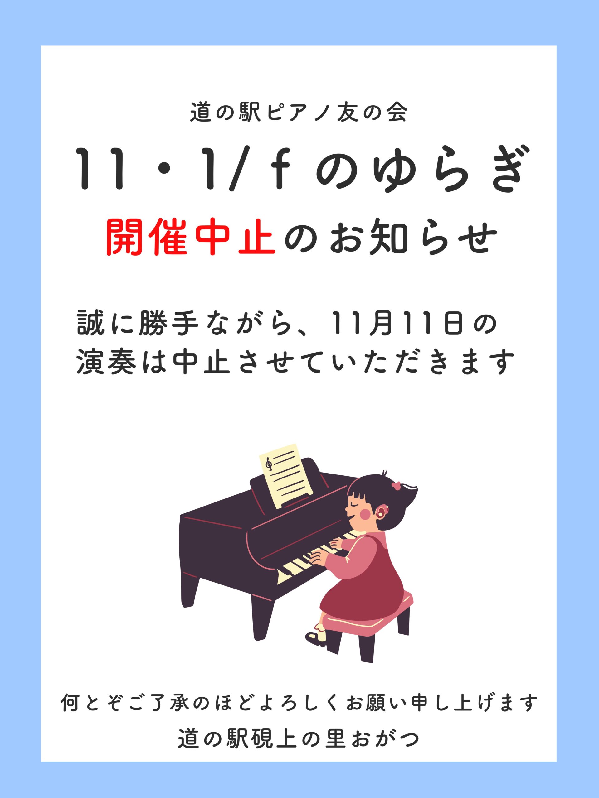 【11・f/1のゆらぎ】開催中止のお知らせ 2025.11.08 いつも道の駅硯上の里おがつをご利用いただきありがとうございます。 11月11日に予定しておりました【11・f/1のゆらぎ】は誠に勝手ながら開催中止とさせていただきます。 何卒ご了承のほどよろしくお願いいたします。 11月2日おがつ縁日開催!! 前の記事 高橋亨明×幹miki 弾き語りライブ♪♪ 次の記事 新着のお知らせ 硯の里で、書を楽しもう! 2025.11.16 高橋亨明×幹miki 弾き語りライブ♪♪ 2025.11.16 11月2日おがつ縁日開催!! 2025.11.01