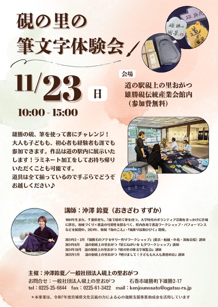 11月23日(日)、書家の沖澤さんをお迎えし、【筆文字体験会】を開催します!