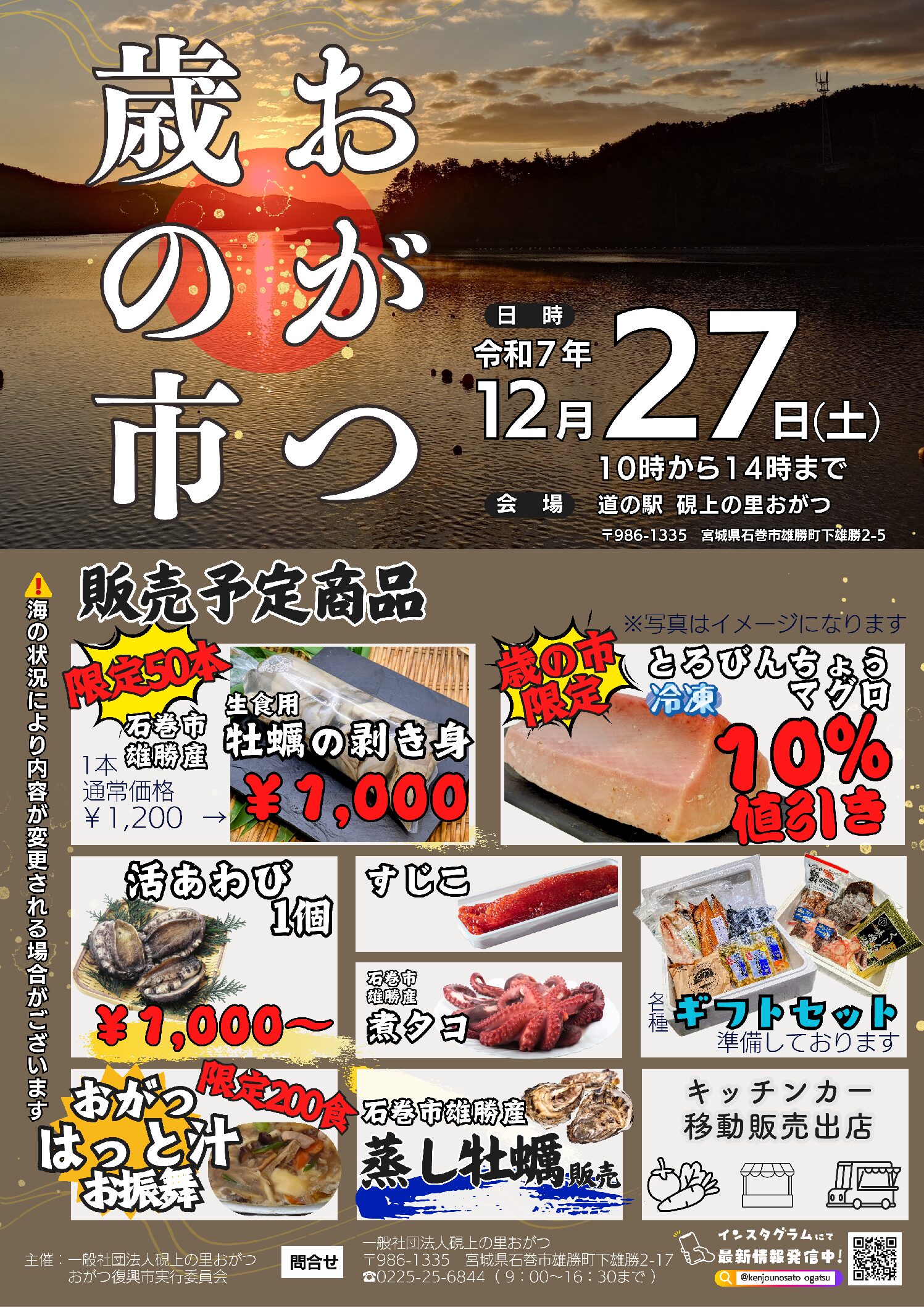 いつも道の駅硯上の里おがつをご利用いただきありがとうございます。